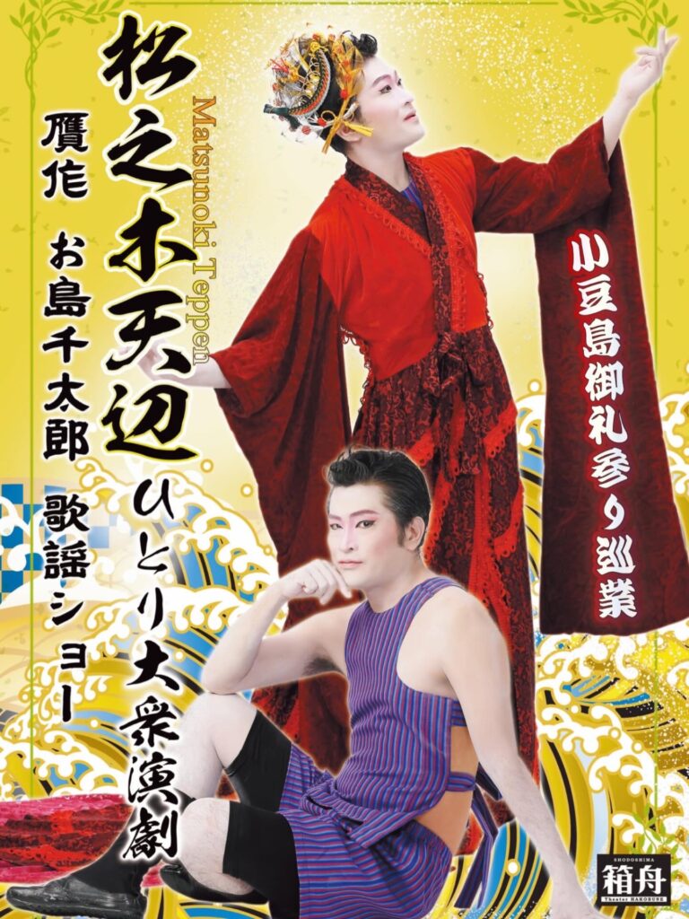 出し物は、2021年にTheater箱舟で初演した松之木天辺 ひとり大衆演劇『贋作 お島千太郎&歌謡ショー』。第一部・お芝居、第二部・歌謡ショーの二部構成でお送りいたします。